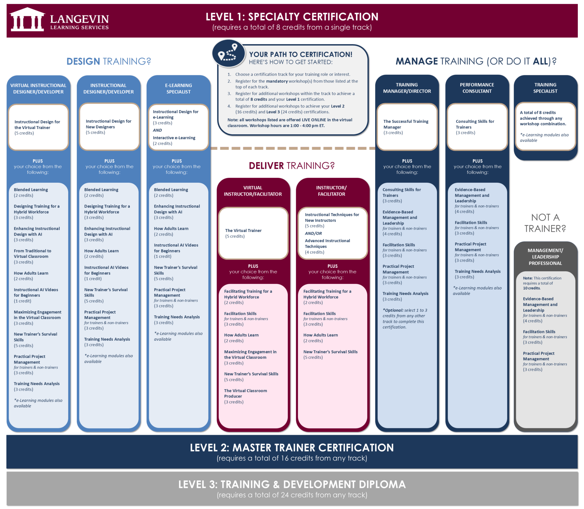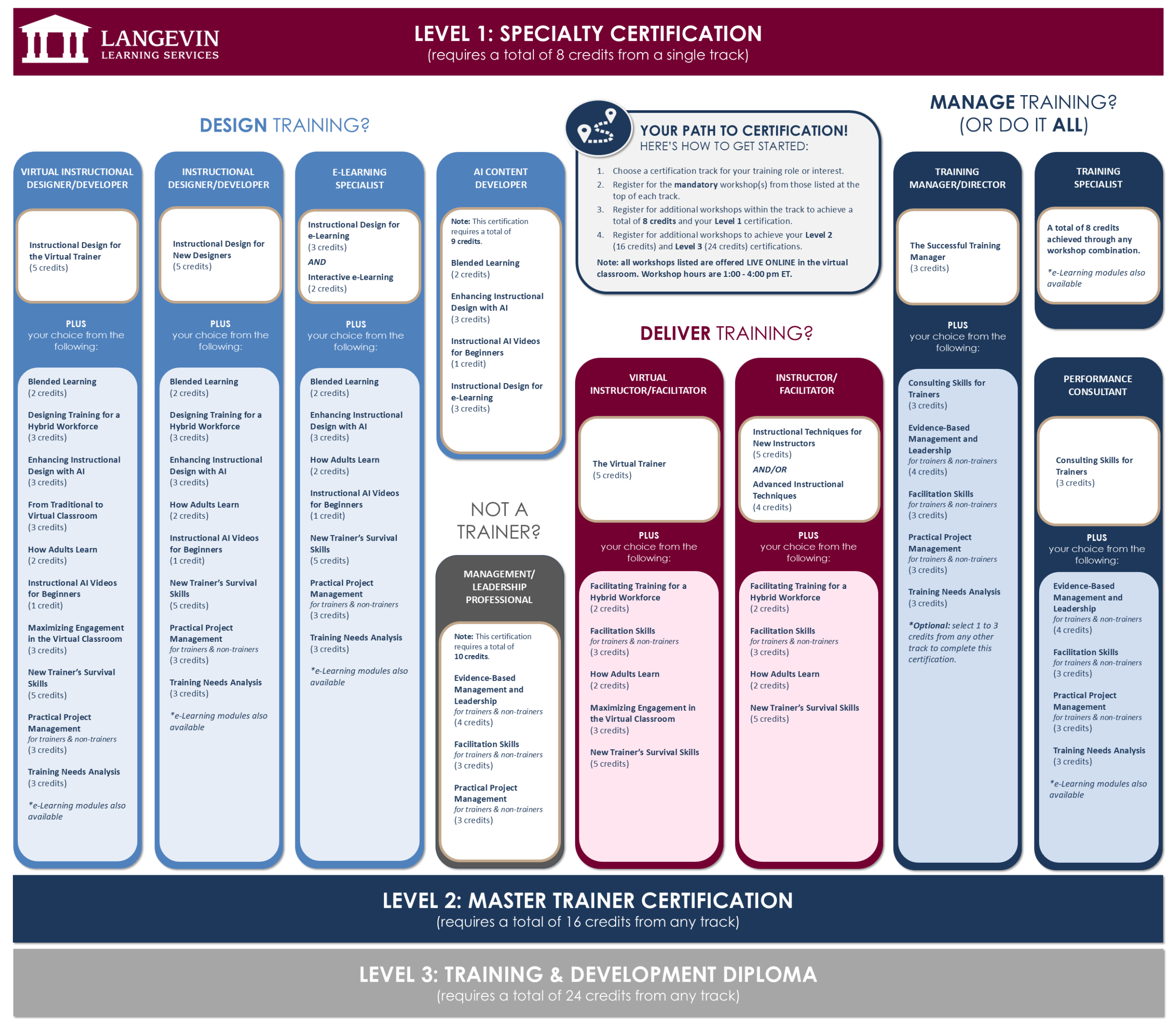 Whether you are new to training, or a seasoned professional, the graphic below is a great starting point to help you decide which workshops best meet your needs.